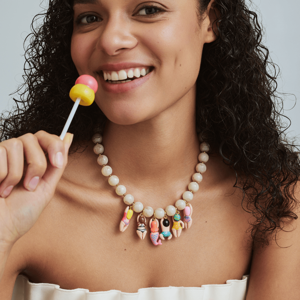 Poolside laughter, sun-kissed memories - our Pool Party Necklace is all about the good times. With colorful swimmer charms and glossy stone beads, this cheerful piece celebrates the carefree joy of sunny days spent at pool parties with friends. Fun, bold, and totally one-of-a-kind, it’s the kind of necklace that makes everyone smile - including you.