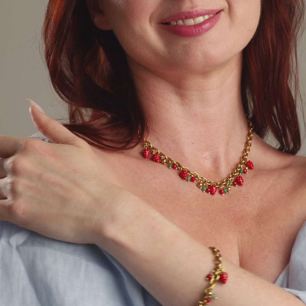 Like your favorite treat, the Strawberry Crush Necklace is a little indulgence you’ll keep coming back to. With clusters of dainty strawberry charms and golden details, it’s playful yet sophisticated, making it the perfect piece to brighten up any outfit.